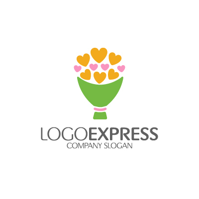 ハートは、愛情、優しさ、そして温もりを象徴し、企業が顧客に温かい気持ちを届け、幸せな生活をサポートすることへの想いを表現します。ブーケは、祝福、感謝、そして喜びを象徴し、企業が特別な日を彩り、心に残る瞬間を演出することを表現します。緑色は、自然、調和、そして癒やしを象徴し、企業が提供する商品やサービスが、人々の心身を癒やし、豊かな気持ちにさせることを表現します。オレンジ色は、温かさ、親しみやすさ、そしてエネルギーを象徴し、企業が持つ明るく、エネルギッシュなイメージを表現します。フラワーショップ、ギフトショップ、ウェディング関連企業など、愛情、祝福、そして喜びをアピールしたい企業に最適です。
