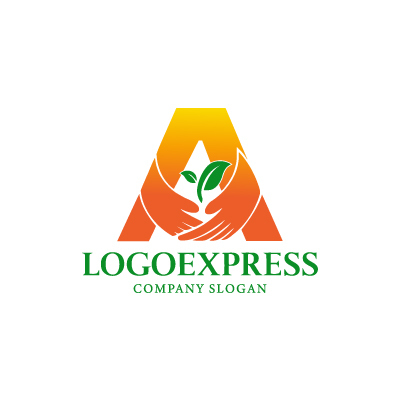 「A」の思いやりのある手と芽のロゴ [8657]
