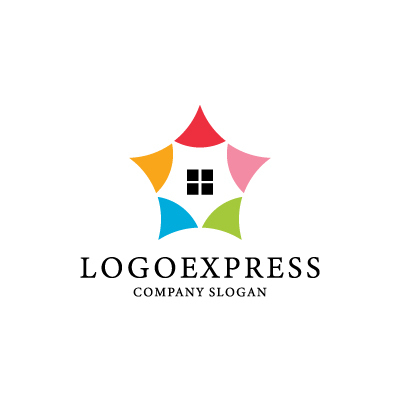 星は、目標、夢、そして未来への道標を象徴し、企業が顧客の夢の実現をサポートし、輝かしい未来へと導く存在であることを表現します。家は、安心感、温もり、そして家族を象徴し、企業が顧客に安全で快適な住環境を提供することへの想いを表現します。多様な色使いは、多様性、個性、そして創造性を象徴し、企業が様々な価値観を尊重し、顧客それぞれのニーズに合わせたサービスを提供することを表現します。不動産会社、住宅メーカー、子供関連施設など、安心、温もり、そして夢をアピールしたい企業に最適です。