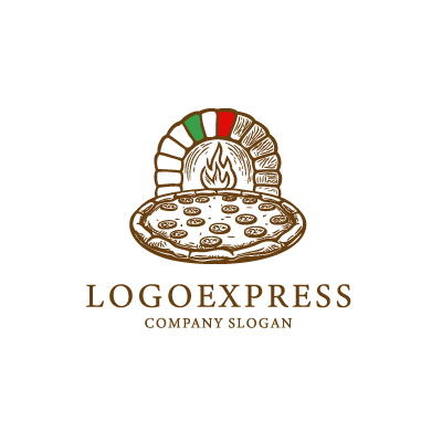 石窯は、伝統的な製法、手作りの温かさ、そして本場の味わいを象徴し、企業が持つ本格的なピザへのこだわりと、伝統的な製法を守り続ける姿勢を表現します。薪の炎は、情熱、エネルギー、そして食欲をそそる香りを象徴し、企業が提供するピザが、食欲をそそる、情熱的な味わいであることを表現します。イタリア国旗のカラーは、本場イタリアの味、伝統、そして品質へのこだわりを象徴し、企業が提供するピザが、本場の味を受け継いだ、高品質なものであることを表現します。ピザレストラン、イタリア料理店、デリバリー専門店など、本格的な味わい、手作り感、そして情熱をアピールしたい企業に最適です。