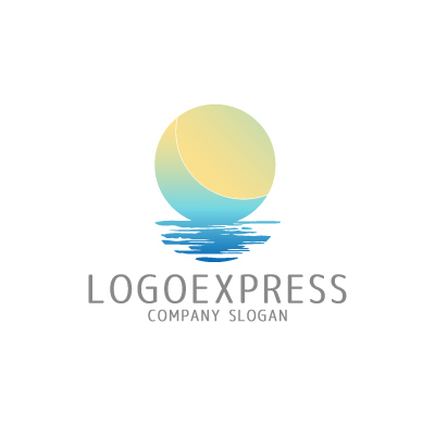 穏やかな月と海の風景ロゴ [8738]