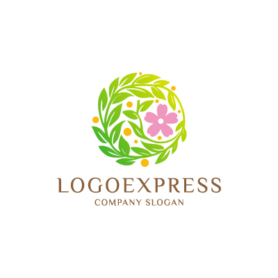 リースは、永遠、調和、そして繋がりを象徴し、企業が顧客との良好な関係を築き、長く愛される存在であることを目指す姿勢を表現します。桜は、美しさ、優しさ、そして新しい始まりを象徴し、企業が提供する商品やサービスが、顧客の生活を彩り、新たな一歩を踏み出す勇気を与えることを願う気持ちを表現します。緑色は、自然、成長、そして調和を象徴し、企業が環境に配慮し、持続可能な社会の実現に貢献する姿勢を表現します。美容関連企業、ウェディング関連企業、エステサロンなど、美しさ、優雅さ、そして調和をアピールしたい企業に最適です。