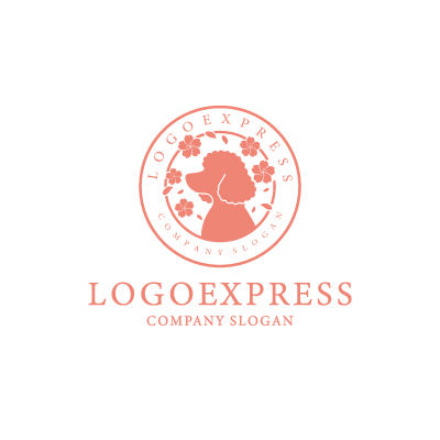 プードルは、賢さ、愛らしさ、そして忠誠心を象徴し、企業が提供する商品やサービスが、ペットと飼い主の生活を豊かに彩ることを表現します。桜の花は、美しさ、優しさ、そして新しい始まりを象徴し、企業が提供する空間やサービスが、顧客に癒やしと幸福感をもたらすことを願う気持ちを表現します。円形のフレームは、調和、繋がり、そして温かい輪を象徴し、企業が地域社会との良好な関係を築き、共に発展していくことを目指す姿勢を表現します。ペットサロン、トリミングサロン、ペットホテルなど、動物への愛情、美しさ、そして癒やしをアピールしたい企業に最適です。