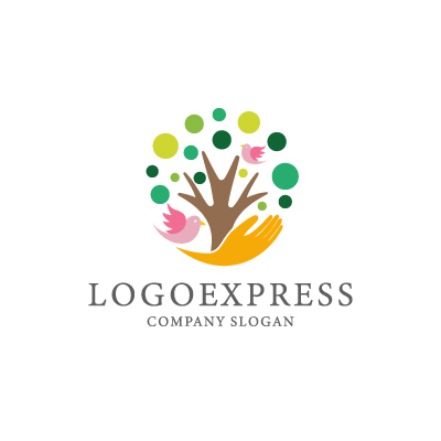 手は、愛情、育む、そして支えるという思いを象徴し、企業が顧客を大切にし、温かいサポートを提供することを表現します。木は、成長、安定、そして未来への希望を象徴し、企業が顧客と共に成長し、豊かな未来を創造していくことを願う気持ちを表現します。鳥は、自由、希望、そして平和を象徴し、企業が持つ創造性を表現します。緑色と黄色のカラーは、自然、健康、そして喜びを象徴し、企業が提供する商品やサービスが、人々の心身を健やかに保ち、幸せな気持ちにさせることを表現します。幼稚園、保育園、児童福祉施設など、子供たちの成長、幸福、そして明るい未来を応援する企業に最適です。
