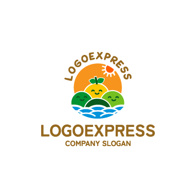 笑顔のフルーツと太陽と波のロゴ [8890]