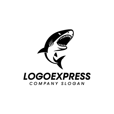 鮫は、力強さ、攻撃性、そして生存本能を象徴し、企業が持つ競争力と、困難な状況でも生き残る強靭な精神力を表現します。牙を剥き出し、獲物を狙う姿は、目標達成への強い意志、そして決して諦めない姿勢を表現します。モノクロのデザインは、洗練された印象を与えつつ、見る人に強いインパクトを与え、記憶に残るロゴとして、企業のブランドイメージを高めます。セキュリティ関連企業、スポーツ用品メーカー、金融機関など、力強さ、存在感、そして競争力をアピールしたい企業に最適です。