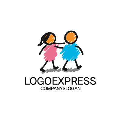 かわいい2人の子供たちのロゴ [9008]