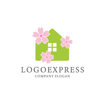 家は、安心感、温もり、そして家族を象徴し、企業が顧客に快適で安全な住環境を提供することへの想いを表現します。桜は、美しさ、優しさ、そして新しい始まりを象徴し、企業が顧客の生活に彩りを与え、新たなスタートを応援する気持ちを表現します。緑色は、自然、成長、そして調和を象徴し、企業が提供する住まいが、自然に囲まれた、心安らぐ空間であることを表現します。不動産会社、住宅メーカー、工務店など、安心、温もり、そして春の訪れをアピールしたい企業に最適です。