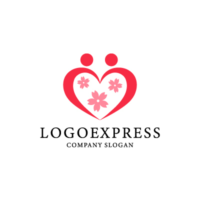 二人の人物は、愛情、調和、そしてパートナーシップを象徴し、企業が顧客との良好な関係を築き、共に支え合う姿勢を表現します。ハートは、愛情、優しさ、そして温もりを象徴し、企業が顧客に温かい気持ちを届け、心安らぐサービスを提供することへの想いを表現します。桜は、美しさ、優しさ、そして新しい始まりを象徴し、企業が提供する商品やサービスが、顧客の生活に彩りを与え、新たなスタートを応援することを表現します。ウェディング関連企業、NPO団体、子育て支援団体など、愛情、絆、そして未来への希望をアピールしたい企業に最適です。