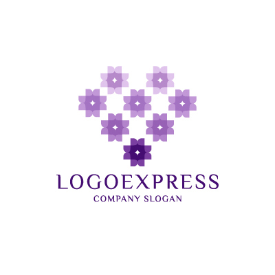 花は、美しさ、優雅さ、そして喜びを象徴し、企業が提供する商品やサービスが、人々の心を豊かにし、美しく彩ることを表現します。花柄の集合体は、調和、繋がり、そしてチームワークを象徴し、企業が多様な才能を結集し、協力し合うことで素晴らしい成果を生み出すことを表現します。ハート型は、愛情、優しさ、そして思いやりを象徴し、企業が顧客を大切にし、心温まるサービスを提供することへの想いを表現します。紫色は、高貴さ、神秘性、そして創造性を象徴し、企業が持つ洗練されたイメージを表現します。美容関連企業、ウェディング関連企業、高級ギフトショップなど、美しさ、優雅さ、そして上質さをアピールしたい企業に最適です。