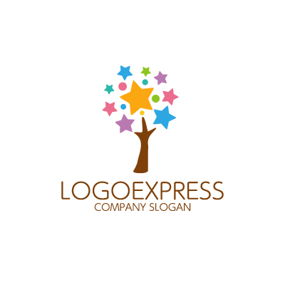 木は、成長、安定、そして未来への希望を象徴し、企業が顧客の成長を支援し、共に繁栄していくことを願う気持ちを表現します。星は、目標、夢、そして輝きを象徴し、企業が顧客の成功をサポートし、明るい未来へと導く存在であることを表現します。多様な色で彩られた星や丸は、多様性、個性、そして創造性を象徴し、企業が持つ創造的なエネルギーと、様々な才能を尊重する姿勢を表現します。教育機関、人材育成企業、子供向け商品企業など、成長、夢、そして未来をアピールしたい企業に最適です。
