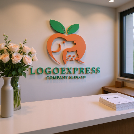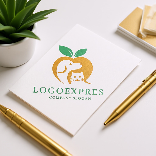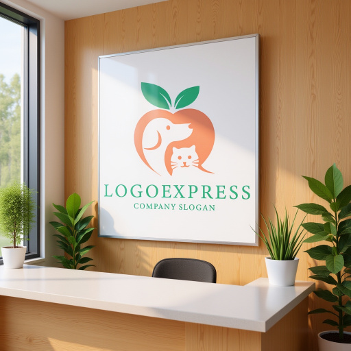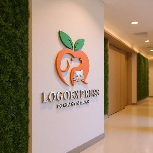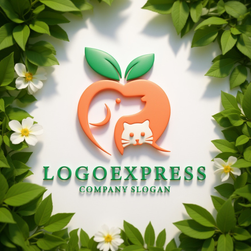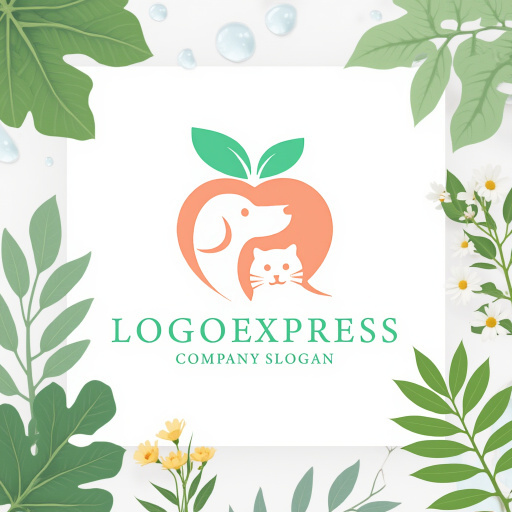 犬と猫は、それぞれペットの代表として、愛情、友情、そして癒やしを象徴し、企業が提供する商品やサービスが、ペットと飼い主の生活を豊かに彩ることを表現します。ハート型の桃は、幸福、健康、そして長寿を象徴し、企業がペットの健康を願い、幸せな毎日をサポートする姿勢を表現します。緑色の葉は、自然、成長、そして安心を象徴し、企業が提供する商品やサービスが、自然由来であり、ペットに安全であることを表現します。動物病院、ペットサロン、ペットフード販売店など、ペットへの愛情、健康、そして安心をアピールしたい企業に最適です。