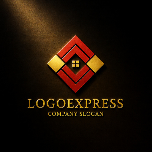 赤い線で囲まれた家は、家庭、安全、そして情熱を象徴し、企業が提供する住空間への温かい想いを表現します。金色の正方形は、価値、富、そして高品質を象徴し、企業が顧客に提供する上質な住宅と資産価値を高めることを表現します。菱形の全体的な形状は、安定感、信頼性、そして専門知識を象徴し、顧客が安心して不動産取引を任せられることをアピールします。不動産販売、高級住宅、または資産運用など、高品質、信頼、そして成功をアピールしたい業界に最適です。