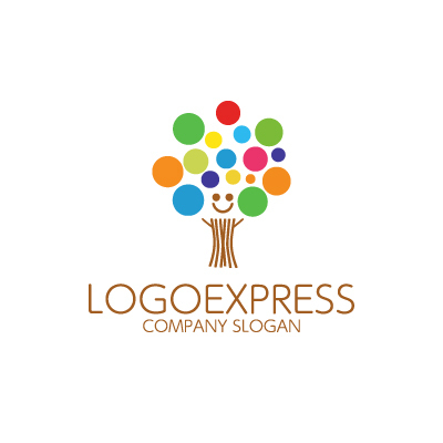 笑顔のカラフルツリーロゴ [9477]