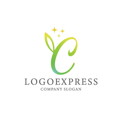 C字と葉、輝く星のエレガントロゴ [9479]