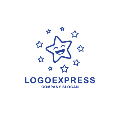 このロゴは、中央に満面の笑顔を浮かべた星と、その周りを囲むカラフルな小さな星々が特徴の、明るく楽しいデザインです。