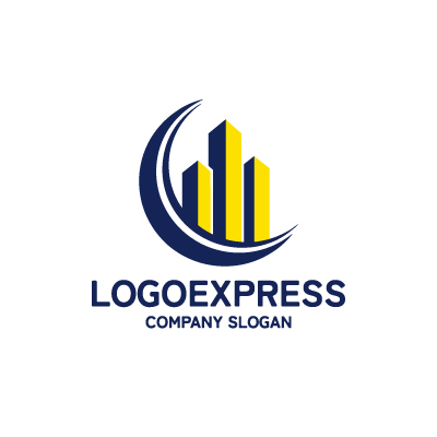 中央の鮮やかな黄色のビルは、繁栄、活力、そして希望に満ちた成長を象徴しています。それらを包み込む深みのある紺色の三日月型曲線は、安定した基盤、信頼性、そして夜空に輝く月のように未来を照らすビジョンを意味します。このロゴは、都市開発、不動産、金融、投資など、堅実な成長と革新的なビジョンを重視する幅広い業界に最適なデザインです。