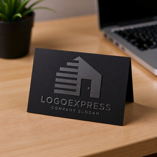 深みのある黒一色で描かれた家は、安心、安定、そして快適な住まいを象徴しています。左側の階段は、継続的な成長、進歩、目標達成へのステップアップを表現し、見る人に未来への希望を与えます。右側のドアは、新しい始まり、機会、そして顧客を温かく迎え入れる企業の姿勢を意味します。シンプルながらも力強いこのデザインは、不動産、建設、リフォーム、教育、コンサルティング、金融、住宅関連サービスなど、信頼性、成長、そして顧客の未来をサポートする幅広い業界に最適です。