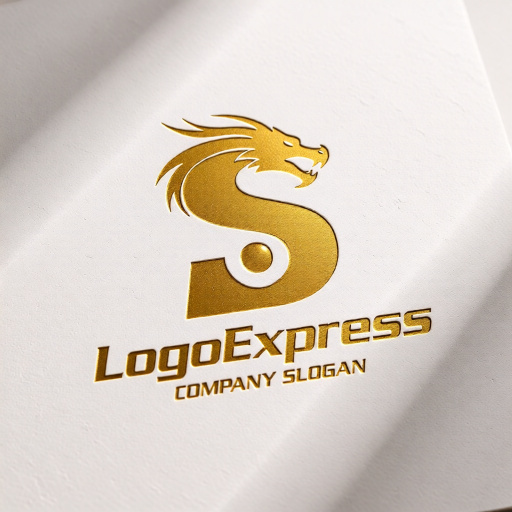 このロゴは、力強く構築されたS字と、その上部に威厳ある龍の頭部を組み合わせた、ダイナミックで先進的なデザインです。