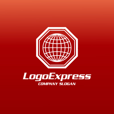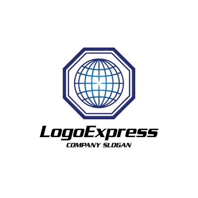 このロゴは、八角形のフレームの中に地球儀が描かれた、グローバルな信頼性と堅実さを表現するデザインです。