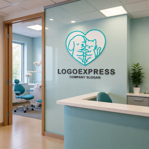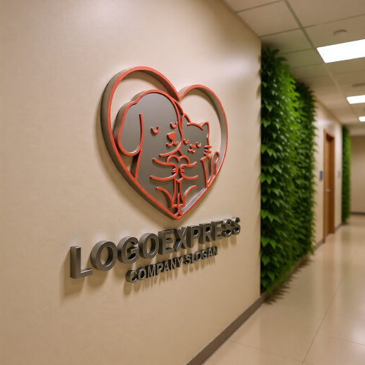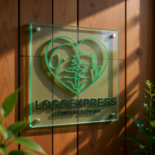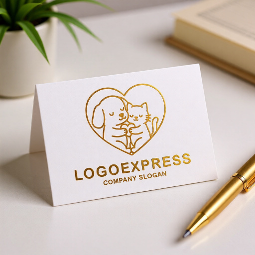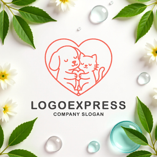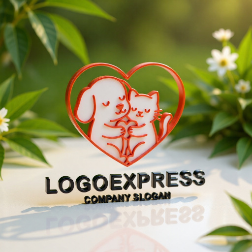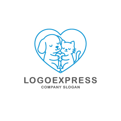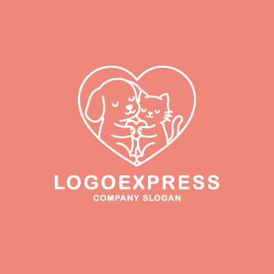 このロゴは、ハートの形の中で犬と猫が仲良く寄り添う姿を描いた、愛情あふれるデザインです。