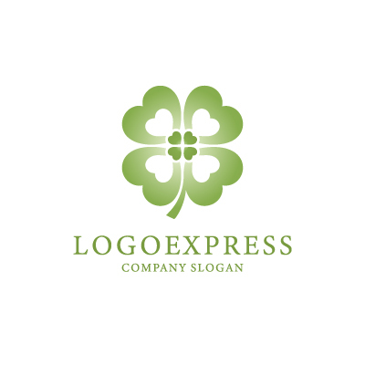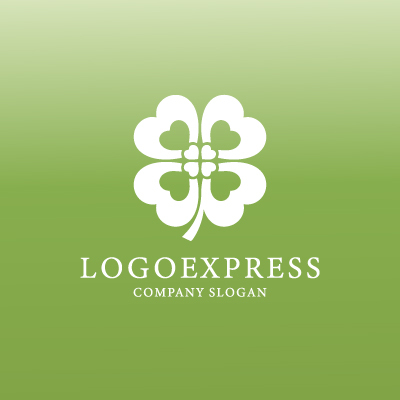 このロゴは、ハートの形をした四つ葉のクローバーをモチーフにした、愛と幸運を表現するデザインです。