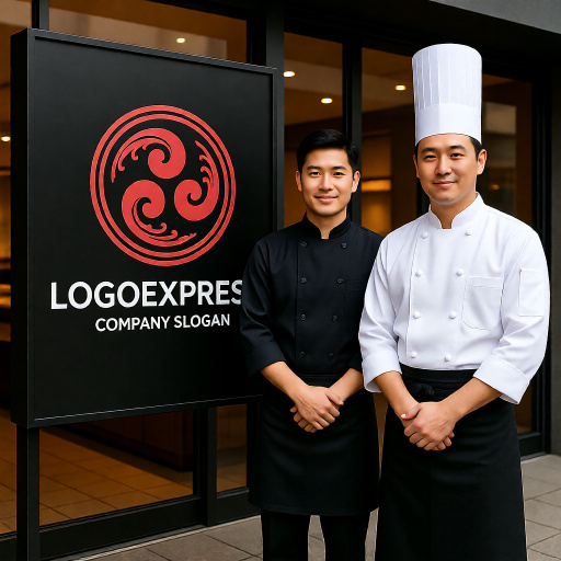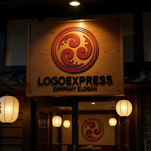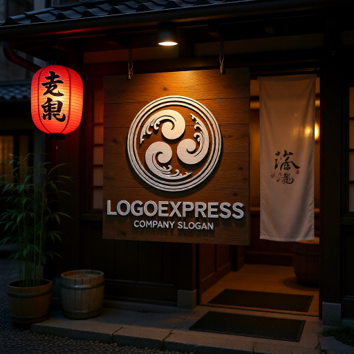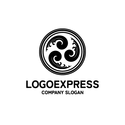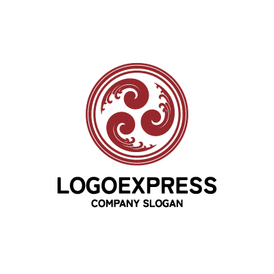 このロゴは、日本の伝統的な「三つ巴」文様と力強い波紋を円の中に組み合わせた、和の美意識とダイナミズムを表現するデザインです。
