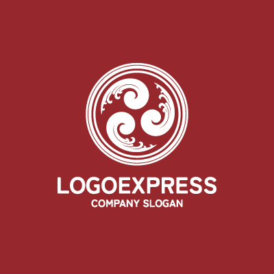 深みのある赤茶色(またはワインレッド)の円の中に、白い線で描かれた三つの巴と波のモチーフが、力強い流れ、循環、エネルギー、そして調和や発展を意味します。三つ巴は、水や宇宙の摂理、そして三位一体のようなバランスを表す伝統的な文様であり、波紋はその継続的な動きと生命力を強調します。円形は、完璧さ、永遠、そしてコミュニティの結束を示唆し、見る人に格式高い安心感を与えます。和の美意識とモダンなデザインが融合しており、日本食レストラン、観光業、ホテル、伝統工芸、武道、神社仏閣関連、または和の精神を大切にする幅広い業界に最適です。