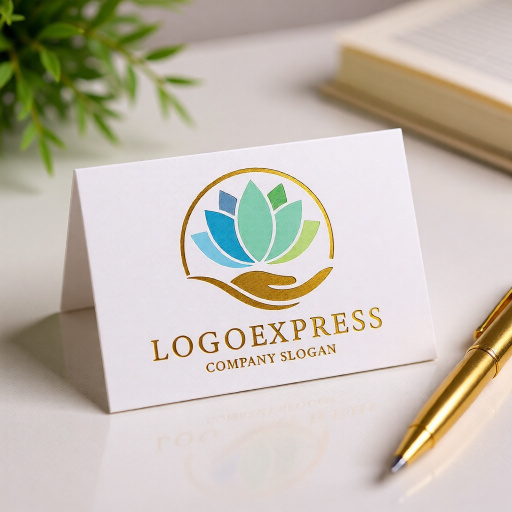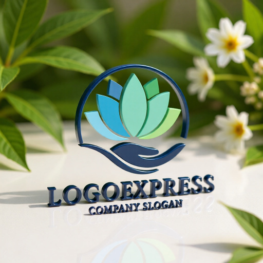 蓮の花は、純粋さ、精神性、美しさ、そして逆境を乗り越える力を象徴し、見る人に穏やかな安らぎを与えます。手は、深いケア、サポート、そして信頼を意味し、顧客に寄り添う温かいサービスを表現します。青と緑のグラデーションは、清らかさ、自然、健康、そして調和を象徴し、全体を囲む円は、全体性、コミュニティ、そして完璧なウェルネス体験を示唆します。このロゴは、ヨガスタジオ、瞑想センター、スパ、ウェルネス、美容・サロン、オーガニック製品、ホリスティックヘルスケア、医療・介護など、心身の健康と美しさ、そして精神性を大切にする幅広い業界に最適です。