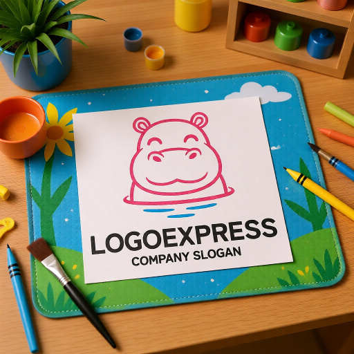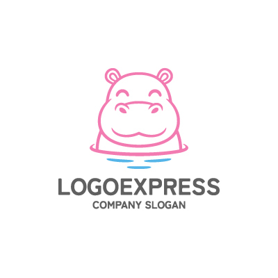 このロゴは、水面に浮かぶ可愛らしいピンク色のカバをモチーフにした、穏やかで親しみやすいデザインです。