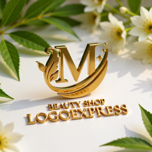 このロゴは、豪華な金色のM字を、優雅な葉と輝く星の軌道で飾った、美しく洗練されたデザインです。