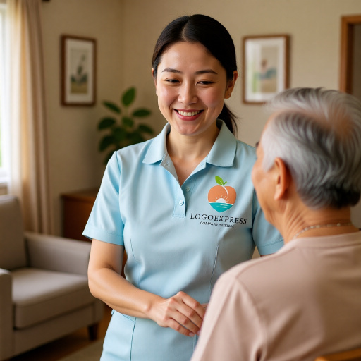 このロゴは、桃の形の中に海辺の夕焼け(または朝焼け)の風景を描いた、美しく癒しに満ちたデザインです。