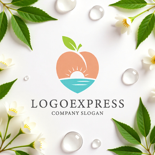 桃の柔らかなピンク色は、優しさ、愛情、そして自然な美しさを象徴し、健康や幸福感を表現します。内部に描かれた太陽が昇る海面(または沈む夕日)は、希望、新しい始まり、穏やかさ、そして自然の恵みを意味します。上部に添えられた緑の葉は、新鮮さ、オーガニック、そして生命力を強調し、全体として、心と体の健康、自然との調和、そして美しい体験を求めるメッセージを伝えます。このロゴは、美容・サロン、オーガニック食品、ウェルネス、リゾート、スパ、健康食品、女性向け商品など、自然な美しさ、癒し、そして健康をアピールしたい幅広い業界に最適です。