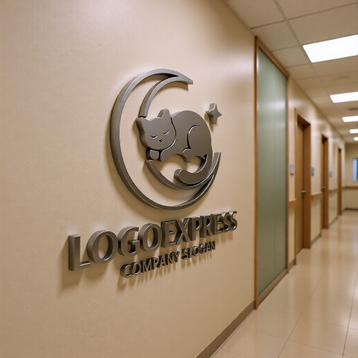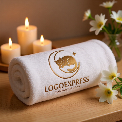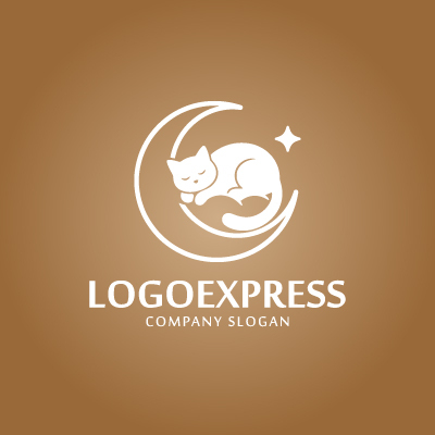 このロゴは、優雅な三日月の上で心地よさそうに眠る猫の姿を描いた、安らぎと高級感を表現するデザインです。