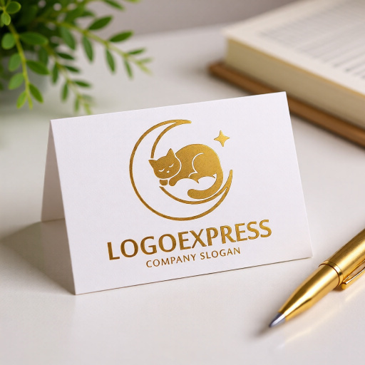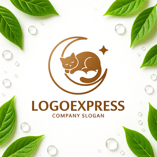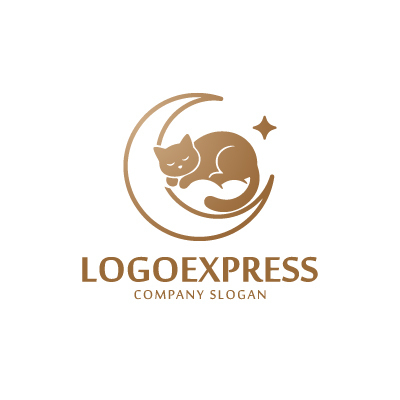 温かみのあるブロンズゴールドの色合いは、上品さ、信頼性、そして心安らぐ温かい雰囲気を象徴しています。眠る猫は、癒し、快適さ、そして安心感を表現し、三日月は夜、夢、静けさ、そして神秘的な魅力を意味します。隣に輝く星は、希望、特別な時間、そしてブランドの持つ上質な輝きを強調します。このロゴは、ペットホテル、猫カフェ、寝具、リラクゼーション、ウェルネス、美容・サロン、高級雑貨、子供向け商品、またはスピリチュアル関連など、癒し、安らぎ、そして上質さをアピールしたい幅広い業界に最適です。