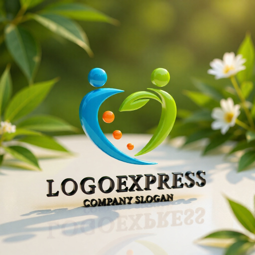 左側の青い数字は、信頼性、プロ意識、つながり、そして漸進的な成長を示唆しています。右側の緑の人型は葉を伴い、豊かな自然、健康、生命力、そして環境への配慮を強調します。中央のオレンジ色のドットは、活発な交流や生命の輝きを意味し、ハートの全体的な形は、深い愛情、思いやり、幸福感、そしてコミュニティの結束を表現し、見る人に優しさと安心感を与えます。このロゴは、医療、福祉、環境保護、NPO法人、ウェルネス、教育、コンサルティング、ITサービスなど、人々の健康と幸福、自然との調和、そして繋がりを大切にする幅広い業界に最適です。