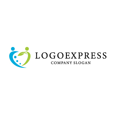 このロゴは、青と緑の二つの人型がハートの形を成すように手を取り合い、人と自然、そして繋がりを表現するデザインです。