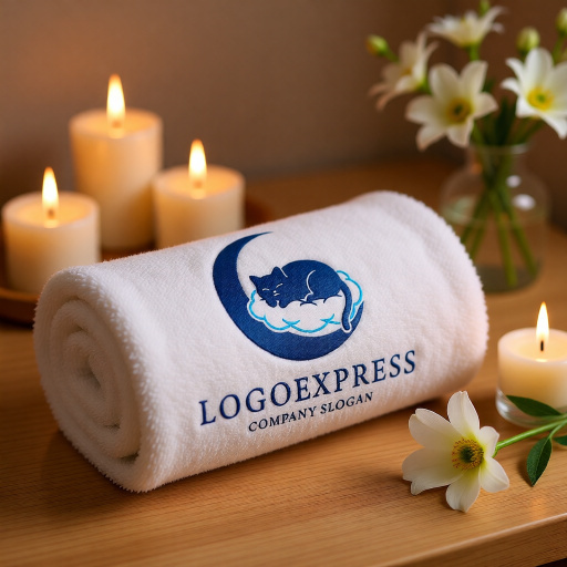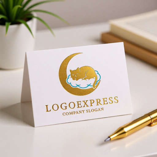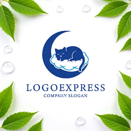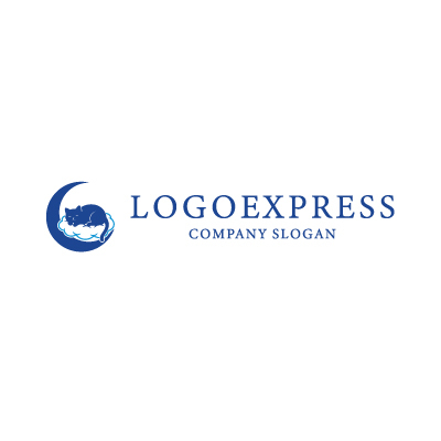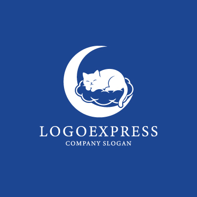 このロゴは、三日月の上で白い雲に包まれ心地よさそうに眠る猫の姿を描いた、安らぎと安心感を表現するデザインです。