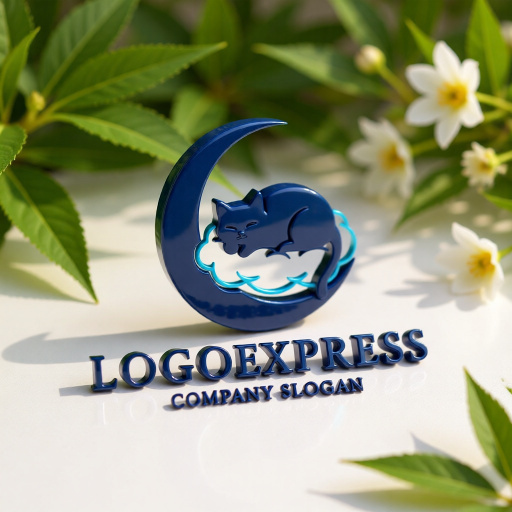 深みのある青い三日月と猫は、夜、夢、静けさ、そして神秘的な魅力を象徴し、見る人に穏やかな印象を与えます。猫が横たわる白い雲は、快適さ、安らぎ、そして軽やかな幸福感を表現し、ペットへの深い愛情とケアの精神を伝えます。全体として、心身のリラックスと、大切な家族との穏やかな時間を願うメッセージが込められています。このロゴは、ペットホテル、猫カフェ、寝具、ベビー用品、リラクゼーション、ウェルネス、子供向け商品、またはスピリチュアル関連など、癒し、安らぎ、そして安心感をアピールしたい幅広い業界に最適です。