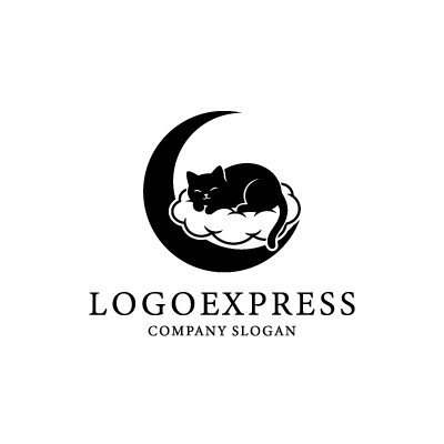 三日月で眠る猫と雲の安らぎロゴ [9590]