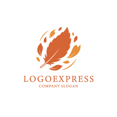 羽は、軽やかさ、自由、知性、そして創造性を象徴し、企業が持つ革新的な精神や柔軟な対応能力を表します。舞い散る葉は、変化、成長、季節の移ろい、そして自然との調和を表現し、企業が持つ持続可能な発展や顧客への配慮を示唆します。温かみのあるオレンジ色は、情熱、活力、親しみやすさ、そして快適さを象徴し、顧客に対して居心地の良い、信頼できる印象を与えます。教育、執筆、出版、エコ関連企業、アパレル、ウェルネス、ライフスタイル、コンサルティングなど、知性、創造性、自然との調和、そして温かさをアピールしたい業界に最適です。