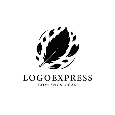 軽やかな羽と舞い散る葉のロゴ [9595]