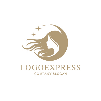 女性の横顔と髪は、美しさ、優雅さ、健康、そして自己表現の自由を象徴し、企業が提供するサービスが顧客の内面から輝きを引き出すことを示唆します。三日月は、女性らしさ、神秘性、安らぎ、再生、そして変化と成長のサイクルを象徴し、企業が顧客に寄り添い、共に歩む姿勢を表現します。周囲の星は、輝き、希望、夢、成功、そして卓越した品質を意味し、顧客が手にする特別な体験や未来への期待を強調します。落ち着いたゴールド系の色合いは、上品さ、洗練、高級感、信頼、そして温かさを醸し出し、顧客に安心感と特別な体験を提供します。美容・エステサロン、ヘアサロン、スパ、ウェルネス、化粧品、ジュエリー、ファッション、女性向けサービス、ブライダル、カウンセリングなど、美しさ、優雅さ、そして自己実現をアピールしたい業界に最適です。