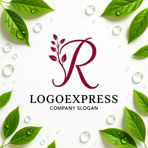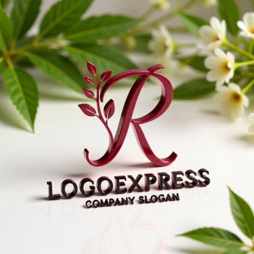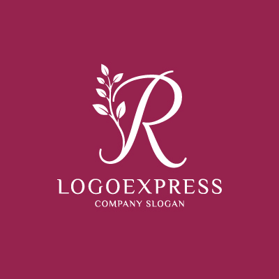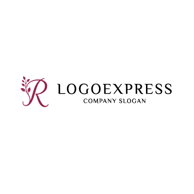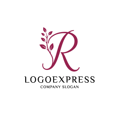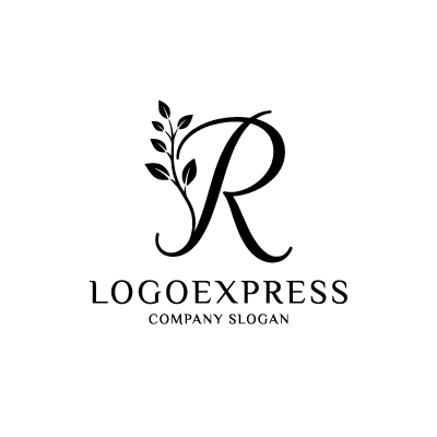 蔓(つる)のような植物のモチーフと、流れるようなアルファベットの「R」を組み合わせた、優雅で自然を感じさせるロゴです。