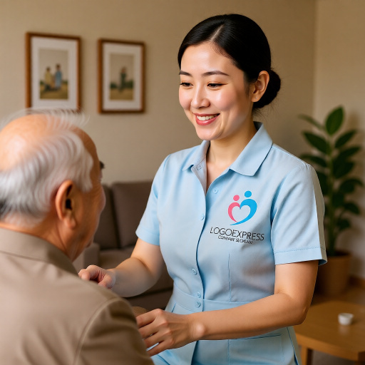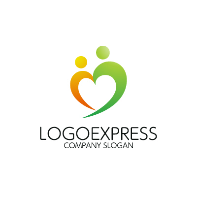二人の人物が手を取り合い、一体となってハートの形を形成する、温かく優しい印象のロゴです。