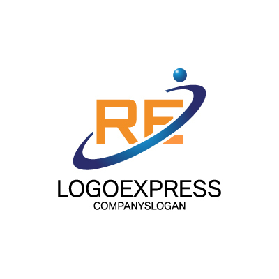 「R」と「E」は企業名やサービス名を示すだけでなく企業が常に前向きに変化し、新たな価値を創造していく姿勢を表現します。曲線は、スピード感、成長の軌跡、そしてグローバルな広がりや繋がりを示唆し、企業が持つダイナミックな活動と未来への展望を強調します。上部の小さな球体は、「人」や「核となるアイデア」を象徴し、企業が人間中心の価値を大切にする姿勢や、新しい知識・技術を追求する意志を伝えます。鮮やかなオレンジ色は、情熱、活力、創造性、親しみやすさを、深みのあるブルーは信頼性、プロフェッショナリズム、そして革新性を象徴し、企業が持つ明るく、かつ堅実なイメージを構築します。不動産、再生可能エネルギー、IT、テクノロジー、コンサルティング、教育、物流など、刷新、成長、繋がり、そして信頼性をアピールしたいあらゆる業界に最適です。