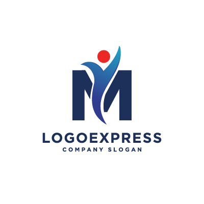 「M」はまたは企業名の頭文字など、多様な意味合いを象徴します。中央の人物像は、個人の成長、目標達成、自由、喜び、そして人間中心の価値観を表現し、企業が人々の潜在能力を引き出し、高みへと導く姿勢を示唆します。深みのあるネイビーブルーは、信頼性、プロフェッショナリズム、安定感を、人物部分の青色のグラデーションは、活力、革新性、未来への希望を象徴し、頭部の赤い点は情熱や活力を強調します。全体として、人々が協力し、共に成長し、高みを目指す、ポジティブで未来志向の企業イメージを構築します。医療、健康、ウェルネス、教育、人材サービス、コンサルティング、NPO、スポーツ、地域コミュニティなど、成長、人間中心の価値、信頼性、そして活力をアピールしたい業界に最適です。