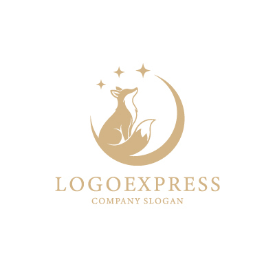 キツネは、知恵、敏捷性、独自性、そして優雅さを象徴し、企業が持つ洞察力や魅力的なイメージを表します。三日月は、神秘性、夜の美しさ、直感、そして穏やかさを象徴し、顧客に安らぎや特別な体験を提供することを示唆します。周囲の星は、希望、夢、成功、そして輝く未来を意味し、企業が目指す高みや顧客に与える期待を強調します。落ち着いたゴールド系の色合いは、上品さ、洗練、高級感、そして信頼を醸し出し、顧客に安心感と特別な体験を提供します。美容・エステサロン、ジュエリー、ファッション、ウェルネス、スピリチュアル関連、動物関連、ギフトショップなど、美しさ、独自性、信頼性、そして神秘的な魅力をアピールしたい業界に最適です。