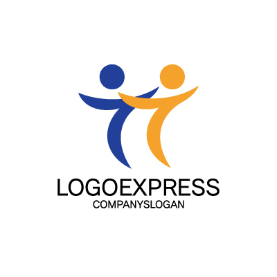 二人の人物が向かい合うことで、協力、パートナーシップ、コミュニティ、そして相互支援の精神を象徴します。両手を広げたポーズは、喜び、達成感、自由、希望、そしてオープンな姿勢を示唆し、企業が持つ前向きな文化と顧客への温かいおもてなしの心を伝えます。青色は、信頼性、プロフェッショナリズム、安定感を、オレンジ色は活力、情熱、創造性、そして親しみやすさを象徴し、企業が持つ明るくダイナミックな未来志向のイメージを構築します。NPO、教育、福祉、人材サービス、コンサルティング、地域コミュニティ、スポーツ、ウェルネス、マッチングサービスなど、繋がり、協力、喜び、そして活力をアピールしたいあらゆる業界に最適です。