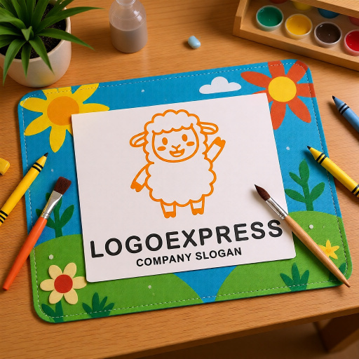 可愛い笑顔で手を振る羊をモチーフにした、親しみやすく温かい印象のロゴです。